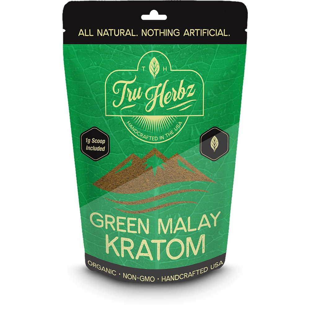 Tru Herbz Green Malay Kratom features organic, all-natural, non-GMO leaves known for supporting long-lasting energy, focus, and balanced mood. Made in the USA with no artificial ingredients. Please consume responsibly.
